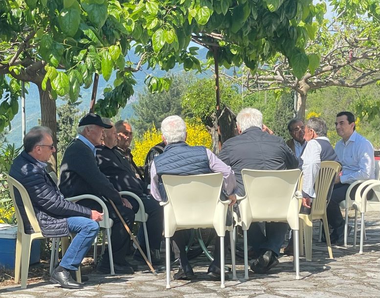 Παράλληλα, συζήτησε με τους κατοίκους, κτηνοτρόφοι και γεωργοί στην πλειονότητά τους, τα προβλήματα του πρωτογενούς τομέα: «Η περαιτέρω ανάπτυξη και στήριξη της ελληνικής περιφέρειας αποτελεί προτεραιότητα για τον Κυριάκο Μητσοτάκη. Στόχος μας είναι τα χωριά μας να μην ερημώσουν αλλά, αντίθετα, να αποκτήσουν ξανά ζωή, με νέες θέσεις εργασίας για τους νέους. Γιατί η καρδιά της Ελλάδας χτυπάει στην ελληνική περιφέρεια».