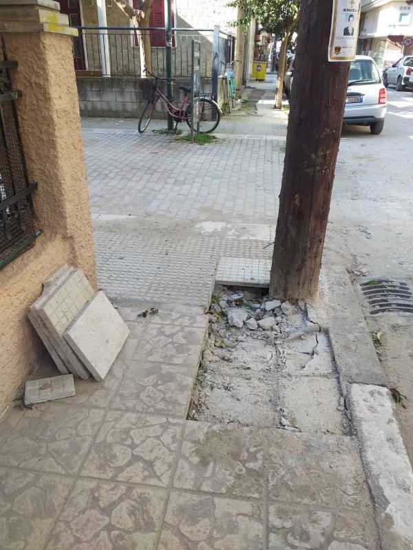 Το συγκεκριμένο πεζοδρόμιο βρίσκεται στη συμβολή των οδών Κορωνίδος και Στεργιοπούλου στα Τρίκαλα. Σήμερα το απαθανάτισε ο φακός του trikalaIN.gr, αλλά όπως μας διαβεβαίωσαν περίοικοι είναι έτσι ενάμιση μήνα τώρα.