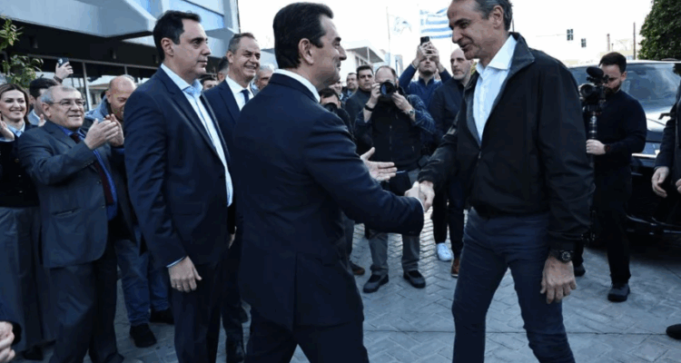 Στο πλευρό του και ο Κώστας Σκρέκας, με τα χαμόγελα να περισσεύουν και τις χειραψίες να στέλνουν μηνύματα εσωκομματικής συσπείρωσης.