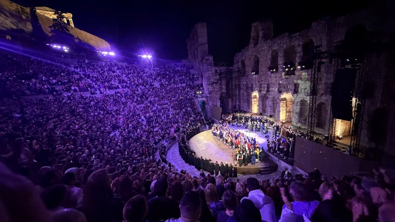 Μια βραδιά γεμάτη φως, δέος και συγκίνηση έζησε ο Λαογραφικός Χορευτικός Όμιλος Τρικάλων «Ο ΑΣΚΛΗΠΙΟΣ», συμμετέχοντας στη μεγάλη μουσικοχορευτική εκδήλωση – αφιέρωμα στον σπουδαίο Χρόνη Αηδονίδη, στο κατάμεστο Ωδείο Ηρώδου του Αττικού.