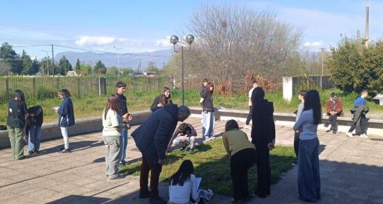 Εδώ ας αναφερθεί ότι ο εκ των υπογραφόντων κ. Καρούτης Θεοφάνης, εδώ και αρκετά χρόνια πραγματοποιεί το συγκεκριμένο «μάθημα» με τμήματα μαθητών της γ’ Γυμνασίου αλλά φέτος σε συνεργασία με την κ. Γάλλου Τριανταφυλλιά «έβγαλαν» στην αυλή όλους τους μαθητές της τάξης (και τα τρία τμήματα) σε μια κοινή εφαρμογή της δράσης αυτής δίνοντας στους μαθητές πιο ενεργό ρόλο. Σ’ όλη τη δράση συμμετείχε και ο κ. Φώτης Μπουλογεώργος που βοήθησε ιδιαίτερα στην επιτυχία του μαθήματος