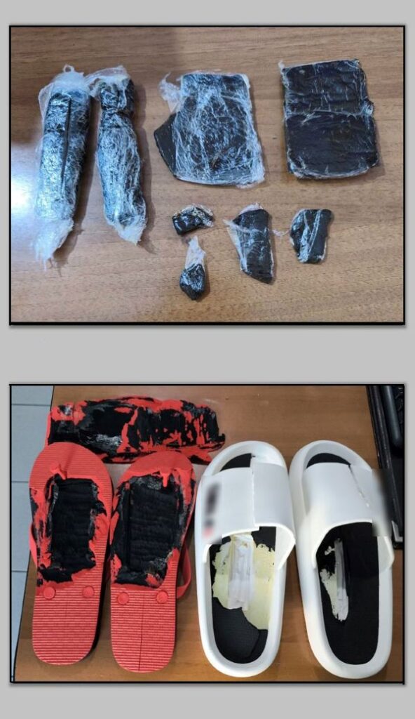 Οι ναρκωτικές ουσίες καθώς και τα είδη υπόδησης κατασχέθηκαν.