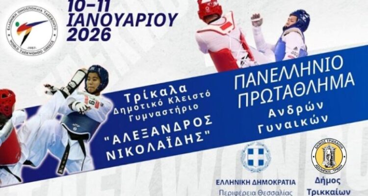 Με την είσοδο του 2026 ο Δήμος Τρικκαίων υποδέχεται μια ακόμη πανελλήνια αθλητική διοργάνωση. Πρόκειται για το Πανελλήνιο Πρωτάθλημα Τάε Κβο Ντο Ανδρών – Γυναικών «Αλέξανδρος Νικολαΐδης» που θα διεξαχθεί το διήμερο 10 και 11 Ιανουαρίου 2026 στο Δημοτικό Κλειστό Γυμναστήριο Τρικάλων (έναντι 2ου Λυκείου).