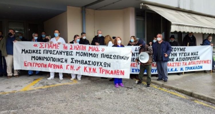 Νέα συγκέντρωση διαμαρτυρίας με τρίωρη στάση εργασίας, πραγματοποίησαν σήμερα το μεσημέρι εκπρόσωποι του ιατρικού και νοσηλευτικού προσωπικού του Γενικού Νοσοκομείου Τρικάλων, έξω από τον χώρο του ΤΕΠ, στο πλαίσιο της πανελλαδικής ημέρας δράσης για την υγεία.