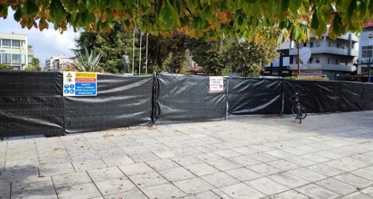 Στην αλλαγή της υπάρχουσας περίφραξης στη υπό ανάπλαση κεντρική πλατεία Τρικάλων με το λευκό μουσαμά, προχώρησε ο εργολάβος του έργου σε συνεννόηση με τον Δήμο Τρικκαίων.