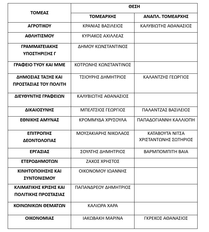 Οι Υπεύθυνοι και Αναπληρωτές στους Τομείς Δράσης της Οργάνωσης, οι οποίοι θα συμμετάσχουν στο διευρυμένο Διοικητικό Συμβούλιο της ανώτερης Κομματικής Οργάνωσης του Νόμου μας ορίζονται οι ακόλουθοι: