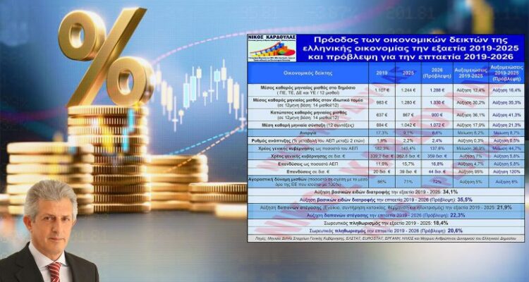 Στον παρακάτω πίνακα φαίνεται η εξέλιξη των 12 οικονομικών δεικτών από το 2019 έως το 2026 καθώς και οι αυξομειώσεις τους.