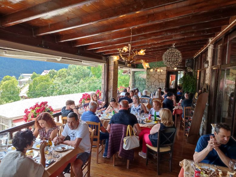 Όλοι οι καλοφαγάδες που επισκέπτονται την περιοχή, προτιμούν την «Ταβέρνα του Παναγιώτη» για πολλούς και διάφορους λόγους, με κυριότερους την εκλεκτή κουζίνα και την ποικιλία των εξαιρετικών πιάτων σε κυνήγια, ψητά της ώρας και μαγειρευτά, την άψογη και φιλική εξυπηρέτηση όλου του προσωπικού του καταστήματος και την μοναδική θέα που προσφέρει στο απέραντο πράσινο τοπίο με τα πανύψηλα έλατα και τους κέδρους, στις πλαγιές της νότιας Πίνδου. Φυσικό είναι με όλα αυτά τα ατού, να αποτελεί πόλο έλξης για όλους όσοι θέλουν να φάνε ποιοτικά, γρήγορα και κυρίως οικονομικά.