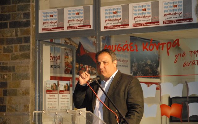 «Ανοίγουμε το δρόμο για την ανατροπή. Γκρεμίζουμε τους “δίδυμους πυλώνες” της μνημονιακής, σκληρής νεοφιλελεύθερης πολιτικής» που «δήθεν βρίσκονται απέναντι αλλά είναι όμοιοι», είπε αναφερόμενος στους υποψηφίους δημάρχους κ. Λάππα και Παπαστεργίου, καθώς και οι δύο είναι το ίδιο νεοφιλελεύθεροι, το ίδιο «εκφραστές του φθαρμένου πολιτικού προσωπικού και αυτοδιοικητικού συστήματος», το ίδιο «”αόρατοι” απ’ την κοινωνία στους αγώνες των εργαζομένων», και πάνω απ’ όλα «το ίδιο συνεπείς “εντολοδόχοι” ενός πελατειακού συστήματος τοπικής διαπλοκής».
