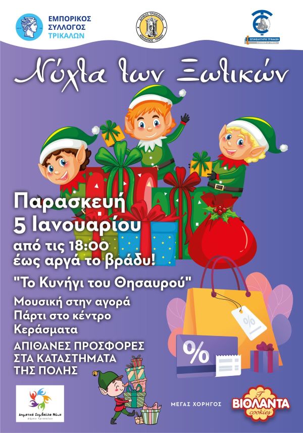 Μια μεγάλη εορταστική και εμπορική εκδήλωση λίγο πριν τα Φώτα συνδιοργανώνουν ο Δήμος Τρικκαίων και ο Εμπορικός Σύλλογος Τρικάλων. Με τον Μύλο των Ξωτικών να συνεχίζει να υποδέχεται χιλιάδες επισκέπτες, οι δύο φορείς διοργανώνουν τη «Νύχτα των Ξωτικών» στην αγορά, μια εκδήλωση στο κέντρο της πόλης, με πλήθος δραστηριοτήτων.