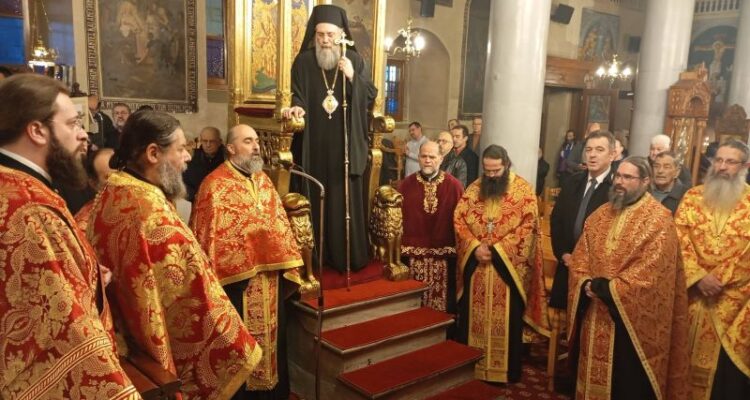 Το πλήθος των πιστών που παρακολούθησε τον Εσπερινό, έλαβε την ευλογία των Τριών Ιεραρχών.