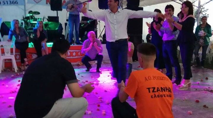 Οι μουσικοί στις θέσεις τους, τα γαρύφαλλα στην πίστα και όλοι να χτυπούν ρυθμικά παλαμάκια στο αντρίκιο ζεϊμπέκικο του Άρη. Μάλιστα ο Αντιδήμαρχος Πύλης, είχε και χορηγό τον…εαυτό του σ’ αυτό το χορό, όπως φαίνεται και στην πορτοκαλί μπλούζα, που φοράει ο νεαρός, χειροκροτώντας τον.