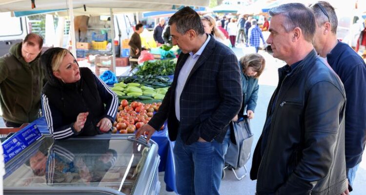 Ο Περιφερειάρχης, συνοδευόμενος από τον Αντιπεριφερειάρχη Πρωτογενούς Τομέα Δημήτρη Τσέτσιλα, είχε την ευκαιρία να διαπιστώσει από κοντά την εικόνα που επικρατεί στους πάγκους, όπου παρά την αυξημένη προσέλευση λόγω των ημερών, η αγοραστική δύναμη παραμένει περιορισμένη. Σε μια κίνηση συμβολικού αλλά και ουσιαστικού ελέγχου, ο κ. Κουρέτας, υπό την ιδιότητά του και ως Καθηγητής Βιοχημείας, εξέτασε την ποιότητα των τοπικών προϊόντων, τονίζοντας πως η Θεσσαλική γη παράγει αγαθά υψηλής διατροφικής αξίας που οφείλουμε να προστατεύσουμε.