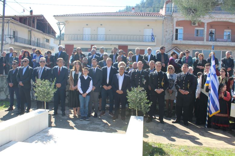 Ακολούθησε η επιμνημόσυνη δέηση στο μνημείο των ηρώων στον αύλειο χώρο του ΕΠΑΛ Πύλης και οι κατάθεση στεφάνων από τις πολιτικές και στρατιωτικές αρχές του τόπου καθώς και τους φορείς της Πύλης. Τηρήθηκε ενός λεπτού σιγή και ακολούθησε η ανάκρουση του Εθνικού Ύμνου.