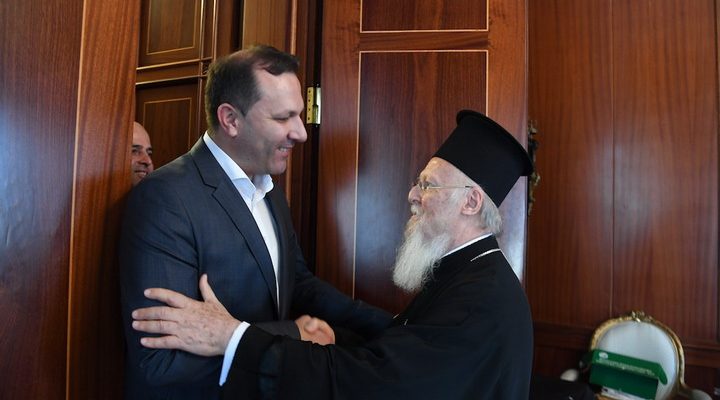 O κ.Spasovski, με την συνοδεία του, έγινε δεκτός με τιμή και εγκαρδιότητα από τον Παναγιώτατο Οικουμενικό Πατριάρχη Βαρθολομαίο.