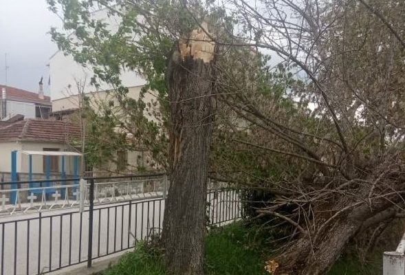 Το σπασμένο δέντρο κλήθηκε να περισυλλέξει η αρμόδια υπηρεσία του Δήμου Τρικκαίων.