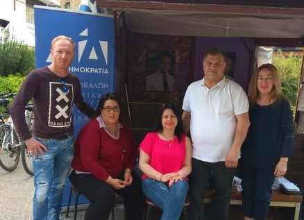 Στο εκλογικό περίπτερο της Νέας Δημοκρατίας στον πεζόδρομο της Ασκληπιού, εντόπισε ο φακός του trikalaIN τους εκπροσώπους της ΔΑΚΕ Νοσοκομείου και Κέντρων Υγείας νομού Τρικάλων να φυλάνε «Θερμοπύλες» και να ενημερώνουν τους πολίτες για τις ευρωεκλογές και τις περιφερειακές εκλογές.