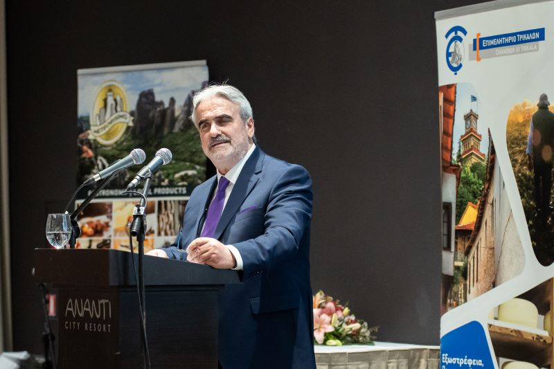 Αρχικά ο Πρόεδρος Βασίλης Γιαγιάκος αναφέρθηκε στη συμβολή του Επιμελητηρίου Τρικάλων στην ανάπτυξη του τουρισμού στο νομό, μέσα από δράσεις όπως το “meteorissimo” με την ανάδειξη της τοπικής γαστρονομίας, των τοπικών γεύσεων και προϊόντων όπως το Τρικαλινό λουκάνικο, τα τυροκομικά προϊόντα, τα ντόπια κρέατα της περιοχής κλπ., αλλά και την ανάδειξη του φυσικού κάλλους του ορεινού και πεδινού τμήματος του νομού Τρικάλων.