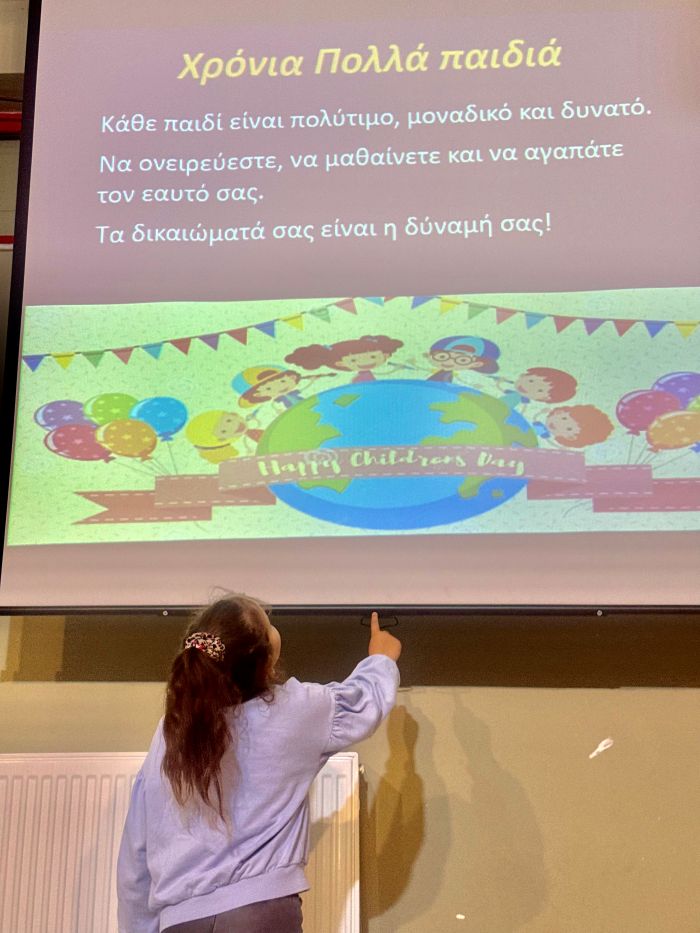 Αμέσως μετά τις επισημάνσεις της Διευθύντριας, η καταξιωμένη Ψυχολόγος μίλησε στα παιδιά για τη Σύμβαση του 1989, εξηγώντας ότι όλα τα παιδιά, χωρίς καμία διάκριση, έχουν δικαίωμα στην εκπαίδευση, στην υγεία, στην προστασία, στην οικογένεια, στην έκφραση και φυσικά στο παιχνίδι και την ξεκούραση. Τόνισε ότι οι ενήλικες – γονείς, δάσκαλοι και Πολιτεία – οφείλουν πάντα να βάζουν το συμφέρον του παιδιού πάνω απ’ όλα.