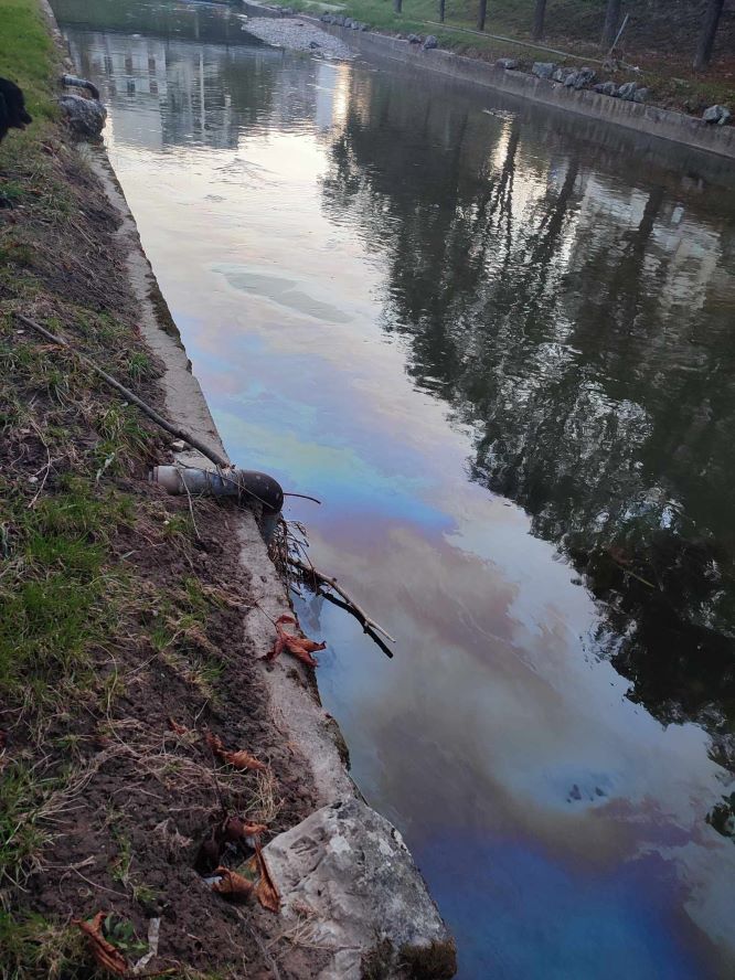 Η εικόνα είναι σημερινή και είναι από τα νερά του Ληθαίου, όπου φαίνεται το πετρέλαιο να επιπλέει πάνω στο νερό, με την χαρακτηριστική του μυρωδιά να εξαπλώνεται στη πόλη.