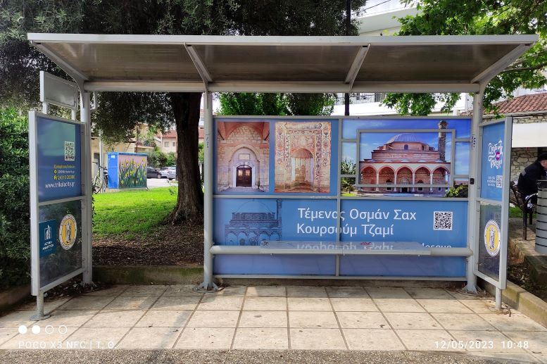 Οι στάσεις των λεωφορείων στα Τρίκαλα ομορφαίνουν, ντυμένες με τις παραστάσεις μνημείων της πόλης όπως το μουσείο Τσιτσάνη, το δίδυμο Οθωμανικό λουτρό, το Κουρσούμ τζαμί κλπ.