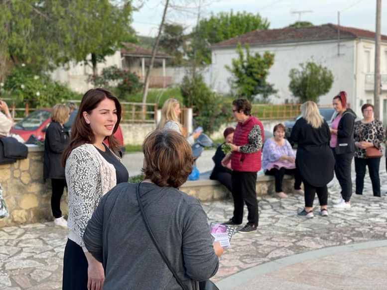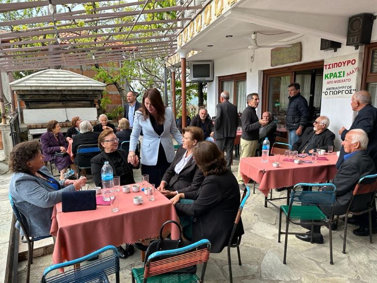 Επόμενες στάσεις της Υποψήφιας Βουλευτή, το Λιόπρασο, το Ελληνόκαστρο, ο Πλάτανος και το Ρίζωμα, όπου επισκέφθηκε τα τοπικά καφενεία και συνομίλησε με τους κατοίκους για αρκετή ώρα.