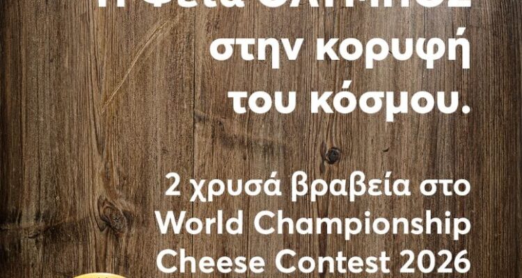 Η φέτα ΟΛΥΜΠΟΣ κατέκτησε δύο χρυσά βραβεία στον διεθνώς αναγνωρισμένο διαγωνισμό World Championship Cheese Contest 2026, επιβεβαιώνοντας την ανώτερη ποιότητα και τη διεθνή ανταγωνιστικότητα των προϊόντων της.