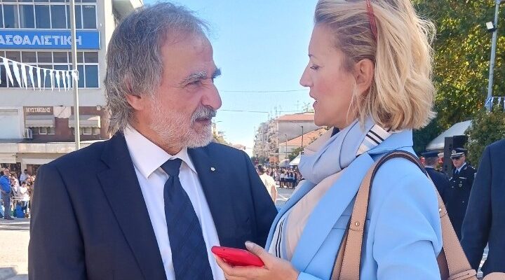 Τετ α τετ Ντίνου Μπάρδα με Βίβιαν Τέγου, λίγο μετά το τέλος της παρέλασης των Τρικάλων.