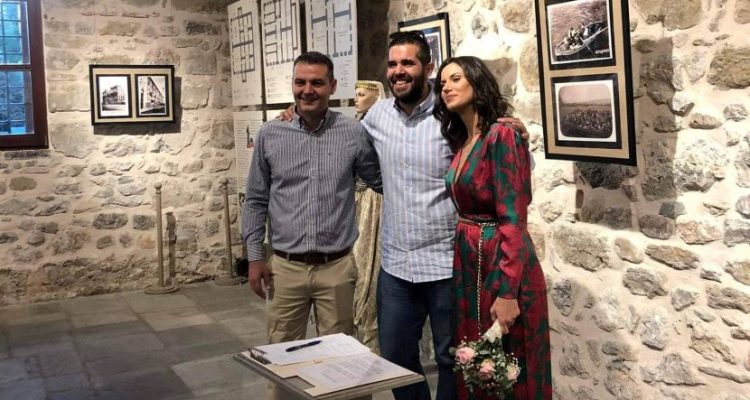 Ο γάμος τελέστηκε το απόγευμα της Κυριακής στο δίδυμο οθωμανικό λουτρό του μουσείου Τσιτσάνη, παρουσία συγγενών, φίλων και συνεργατών του ταιριαστού ζευγαριού και με «κουμπάρο» τον Αντιδήμαρχο Τεχνικών Υπηρεσιών Γιώργο Καταβούτα.