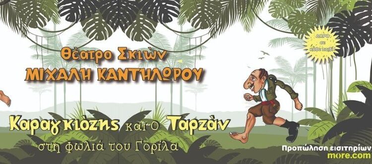 Ο Καραγκιοζοπαίκτης Μιχάλης Καντήλωρος παρουσιάζει μια ξεκαρδιστική και περιπετειώδη παράσταση Θεάτρου Σκιών με τον τίτλο «Ο Καραγκιόζης και ο Ταρζάν στη Φωλιά του Γορίλα».