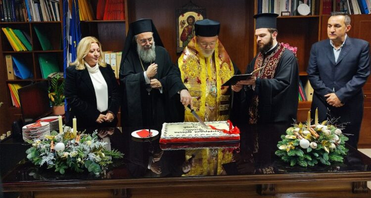Την πίτα έκοψε η Αντιπεριφερειάρχης Τρικάλων Χρύσα Ντιντή και την ευλόγησαν ο Τρικαλινής καταγωγής Θεοφιλέστατος Επίσκοπος Κιγκάλι Ρουάντα Αφρικής κ. Ιωακείμ Σκρέτας, ο Σεβασμιώτατος Μητροπολίτης Τρίκκης, Γαρδικίου και Πύλης κ. Χρυσόστομος και ο Πρωτοσύγκελος της Ιεράς Μητρόπολης Αρχιμανδρίτης π. Αλέξιος Κανίνας.