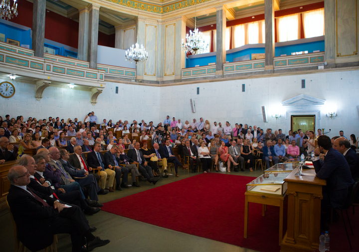Στην κατάμεστη αίθουσα της παλιάς βουλής το ιστορικό στέλεχος της κεντροδεξιάς παράταξης, ο οποίος κατά την μακρά πολιτική του παρουσία διετέλεσε επτά φορές υπουργός, παρουσίασε το βιβλίο του στο οποίο ανέλυσε τα αίτια της κρίσης αλλά και τις προοπτικές ανάταξης της πατρίδας μας.