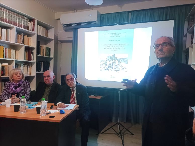 Με μεγάλο ενδιαφέρον παρουσιάστηκε το απόγευμα της Παρασκευής στην αίθουσα της Βιβλιοθήκης Παναγιώτη και Μαρίας Χατζηγάκη, το σημαντικό και πρωτότυπο βιβλίο του Τρικαλινού ιστορικού κ. Παναγιώτη Γρηγορίου με τίτλο «Ο καθημερινός βίος των Ελλήνων Στρατιωτών κατά τον Α΄ Παγκόσμιο Πόλεμο και τη Μικρασιατική Εκστρατεία (1917-1922)». Το βιβλίο εξέδωσε ο Φιλολογικός, Ιστορικός, Λογοτεχνικός Σύνδεσμος (Φ.Ι.ΛΟ.Σ.) Τρικάλων σε συνεργασία με τον Εκδοτικό Οίκο Κ. & Μ. Σταμούλη (Θεσσαλονίκη), πρόκειται για το υπ’ αρ. 25 βιβλίο της σειράς «Κείμενα και Μελέτες» του Φ.Ι.ΛΟ.Σ. και αποτελείται 255 σελίδες σχήματος 24Χ17 εκ.