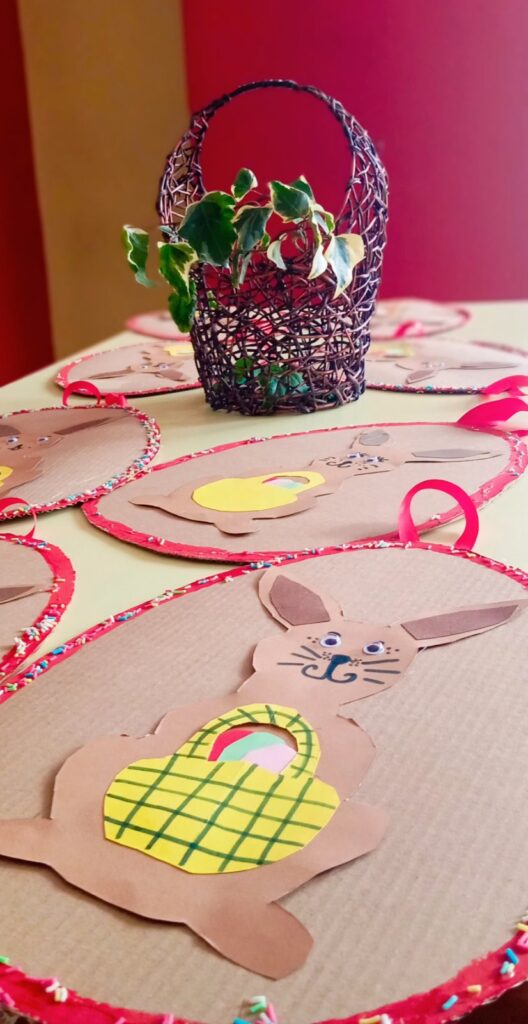 Στο πλαίσιο των πασχαλινών εργαστηρίων, οι μικροί δημιουργοί κατασκεύασαν μεγάλες κουνελοκορνίζες, συμβάλλοντας με τον δικό τους ξεχωριστό τρόπο στον στολισμό των χώρων του ΚΔΑΠ. Παράλληλα, με χρωματιστές κιμωλίες, ζωγράφισαν την αυλή του σχολείου, γεμίζοντάς την με πασχαλινά αυγά και ανοιξιάτικα σχέδια.