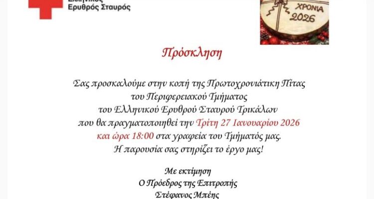 Με χαρά και ελπίδα για μια χρονιά γεμάτη υγεία, αλληλεγγύη και προσφορά, σας προσκαλούμε να ενώσουμε τις δυνάμεις μας και να κόψουμε μαζί την παραδοσιακή βασιλόπιτα!