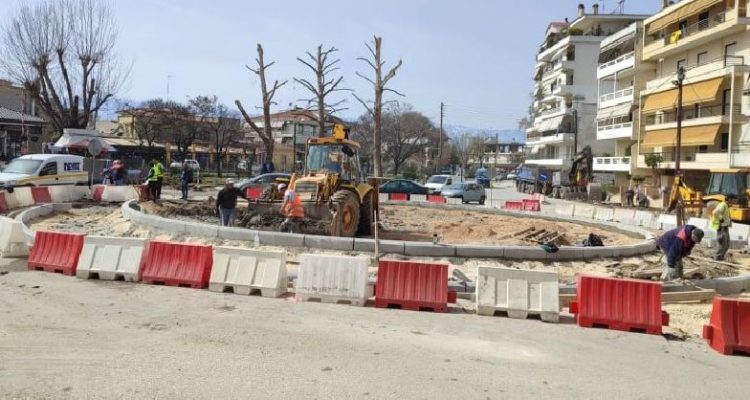 Εντατικά συνεχίζονται τα έργα διαμόρφωσης του νέου κυκλικού κόμβου στην οδό Ελευθερίας, από τον Δήμο Τρικκαίων.