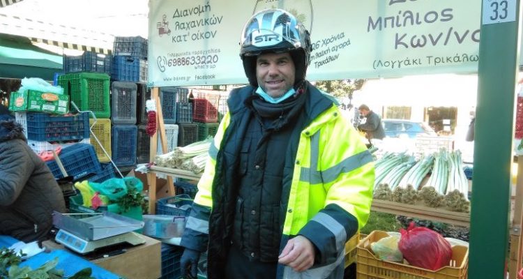 Μπορεί να βρίσκεται πίσω από τον πάγκο της λαϊκής, όμως είναι πάντα έτοιμος να διανείμει με το μηχανάκι του και φορώντας τα απαραίτητα αξεσουάρ του, όλα του τα είδη κατ΄ όικον, εξυπηρετώντας τους πολυπληθείς πελάτες του.