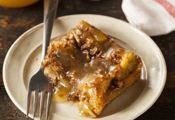 - Ψήνουμε την πουτίγκα στον φούρνο για 35-40 λεπτά, μέχρι να φουσκώσει και να χρυσίσει.