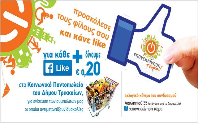 Κάθε «like» στην σελίδα του συνδυασμού, μετατρέπεται αυτόματα στο χρηματικό ποσό των 0,20€ που θα προσφέρουν για φέτος τα μέλη του συνδυασμού.