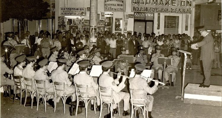 Στη σημερινή φωτογραφία της στήλης Ρετρό, απεικονίζεται η μπάντα της 1ης Στρατιάς Λάρισας στις 14 Σεπτεμβρίου του 1973 στα Τρίκαλα, στην αρχή του πεζόδρομου της Ασκληπιού, εκεί που είναι η βρύση σήμερα.