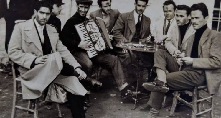 Από αριστερά διακρίνονται οι Μάκης Καμπελής, Σωτήρης Καραμούζης, Κώστας Παπούλιας με το ακορντεόν, Κώστας Σαράντης, Γιάννης Παζαΐτης, Δημήτρης Ρόμπος, Ηρακλής Μυστακίδης και άλλοι.
