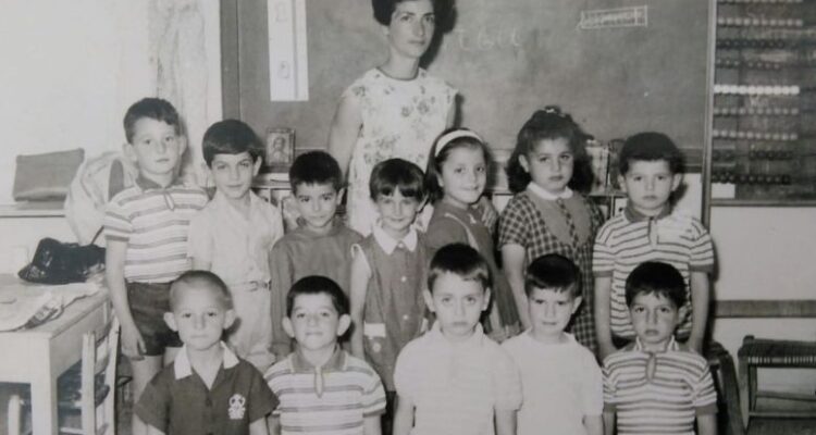 Οι μαθητές του νηπιαγωγείου Τσιλιμίγκα μαζί με τη νηπιαγωγό τους κ. Λίτσα, την σχολική χρονιά 1968-69. Η φωτογραφία είναι τραβηγμένη (πιθανότατα) τον Μάιο του 1969.