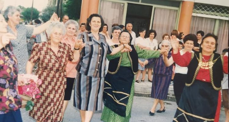 Στη φωτογραφία που χρονολογικά εντοπίζεται γύρω στα τέλη της δεκαετίας του ΄80, εικονίζονται γυναίκες της συνοικίας να χορεύουν τον «Κλήδονα», κάποιες φορώντας και τις παραδοσιακές τους στολές.