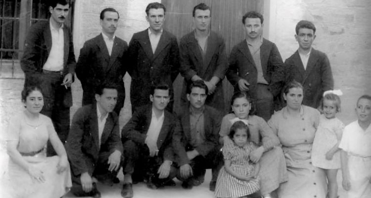 Κάτω από αριστερά: Τσιβούλα Ευαγγέλου, Άγνωστος, Άγνωστος, Δημήτρης Γαρδίκας, Ευδοκία (Μπουλίκα) Χαϊδεμένου, στην αγκαλιά της η Όλγα Καρανάσιου, δίπλα η Κωνστάντω Καρανάσιου με τη μικρή Φρειδερίκη και ο Θανάσης Καρανάσιος.