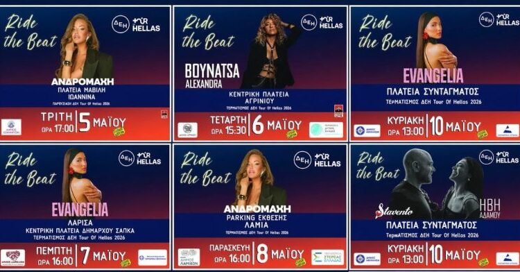 Από τις 12:00, το Ride the Beat μετατρέπει το Σύνταγμα σε σημείο συνάντησης για όλη την πόλη, με τους Stavento, την Ήβη Αδάμου, την Evangelia, την Kira May Cry και DJ sets με τον Νίκο Μάρκογλου και τη Μαρία Φραγκάκη, σε ένα εντυπωσιακό φινάλε για τον ΔΕΗ Tour of Hellas 2026.