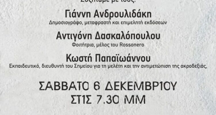 Ο Αυτοδιαχειριζόμενος Κοινωνικός Χώρος “Rossonero” οργανώνει εκδήλωση-συζήτηση για την ακροδεξιά βαρβαρότητα