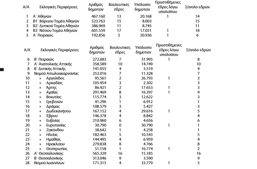Δημοσιεύτηκε το ΦΕΚ με τον αριθμό των βουλευτικών εδρών κάθε εκλογικής περιφέρειας, για τις γενικές βουλευτικές εκλογές με βάση τα δημοσιευθέντα αποτελέσματα του νόμιμου πληθυσμού (δημοτών) της από 10 έως 24 Μαΐου 2011, γενικής απογραφής.