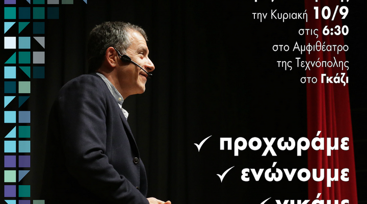 Μάλιστα, την ερχόμενη Κυριακή 10 Σεπτέμβρη ο Στ. Θεοδωράκης πραγματοποιεί ανοιχτή συγκέντρωση στην Τεχνόπολη, στο Γκάζι, στις 6.30 το απόγευμα, στο αμφιθέατρο.