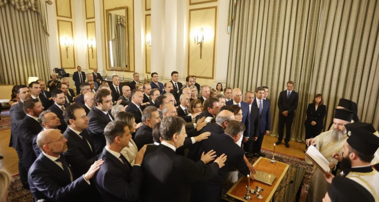 Μετά την τελετή ορκωμοσίας όλων των υπουργών και υφυπουργών ξεκίνησε η διαδικασία υπογραφής του πρωτοκόλλου και η παραλαβή των υπουργείων.
