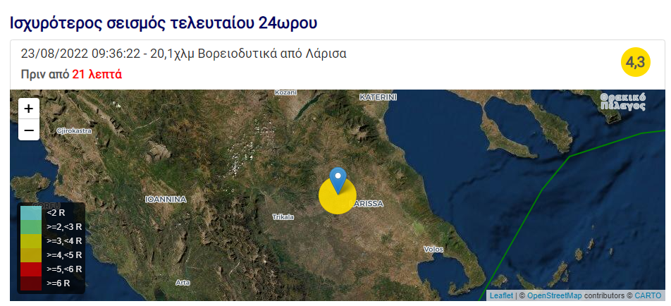 Σεισμική δόνηση έγινε αισθητή στην πόλη των Τρικάλων